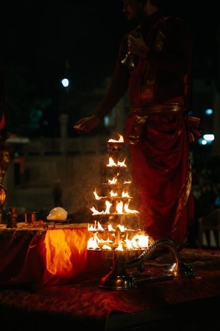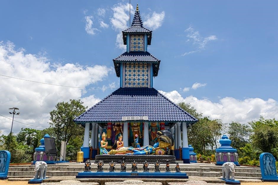 Download and install a PDF reader with Sanskrit font support. Create a quiet, reverent space for study or recitation. Use the text for daily meditation or worship, and reference commentaries for deeper understanding. Regular practice enhances spiritual connection and knowledge retention. Ensure proper pronunciation by following guidelines or seeking guidance from scholars. This sacred text is a powerful tool for personal growth and devotion.